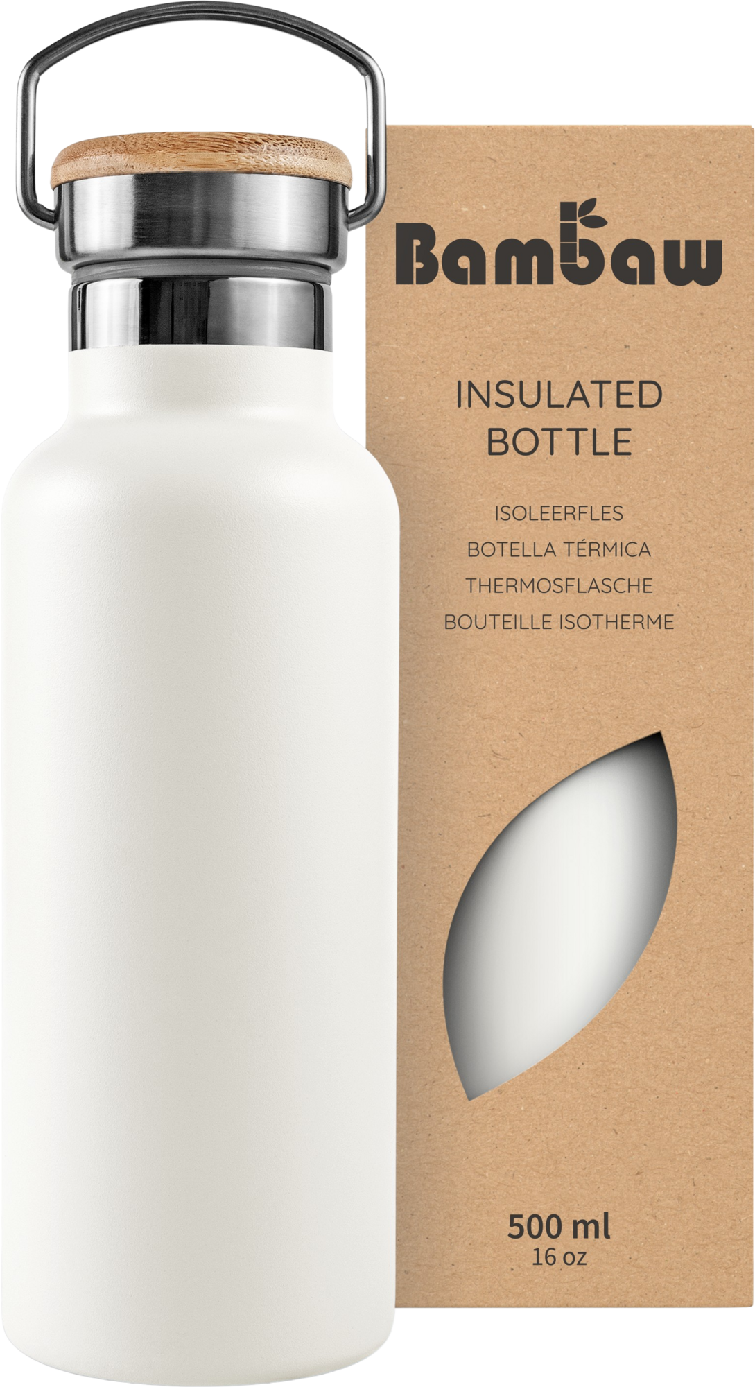 Bambaw Insulated Stainless Steel Bottle, 500 ml , Polar White