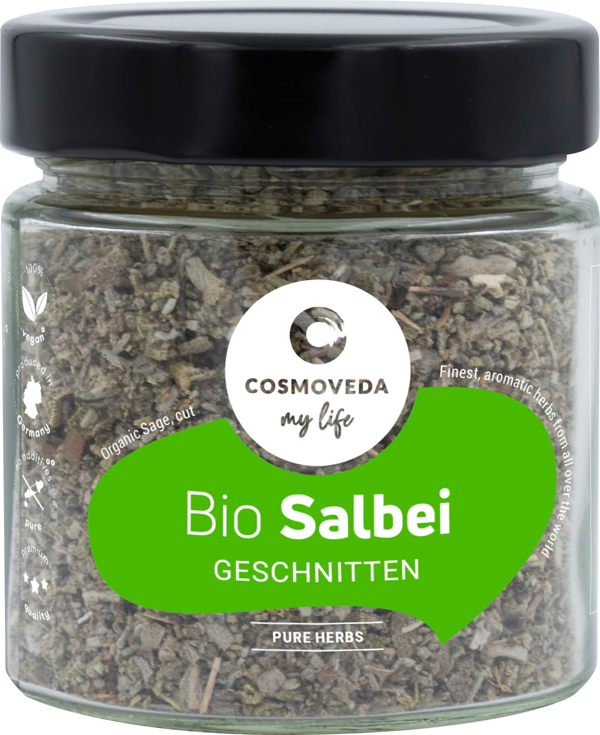 Sage is very popular worldwide. Cosmoveda's sage is not only pleasantly bitter, it also has a slightly spicy flavour. Sage is very important in Italian cuisine.