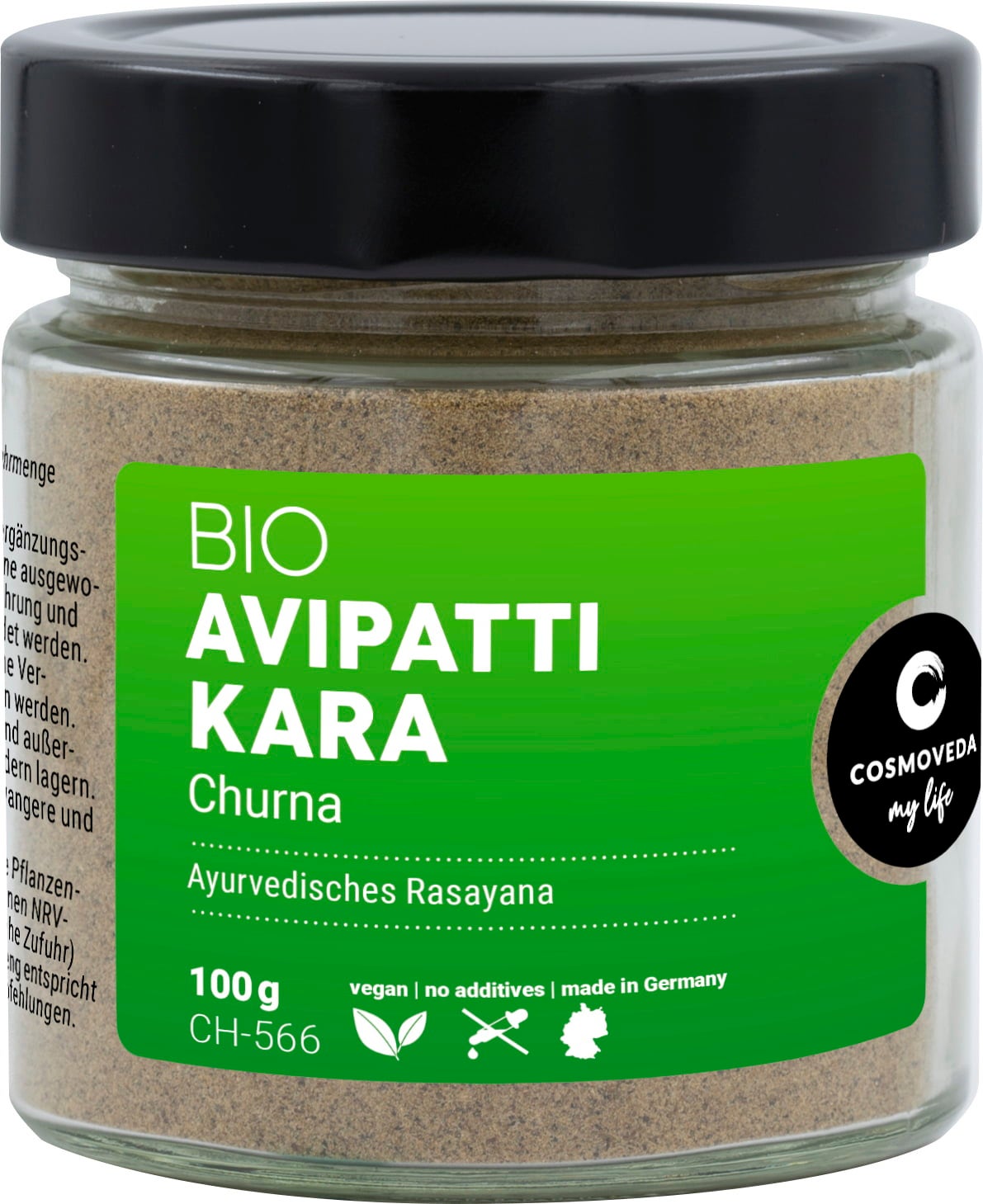 The Organic Avipattikara Churna is a traditional Ayurvedic spice powder that has a pitta-balancing function.