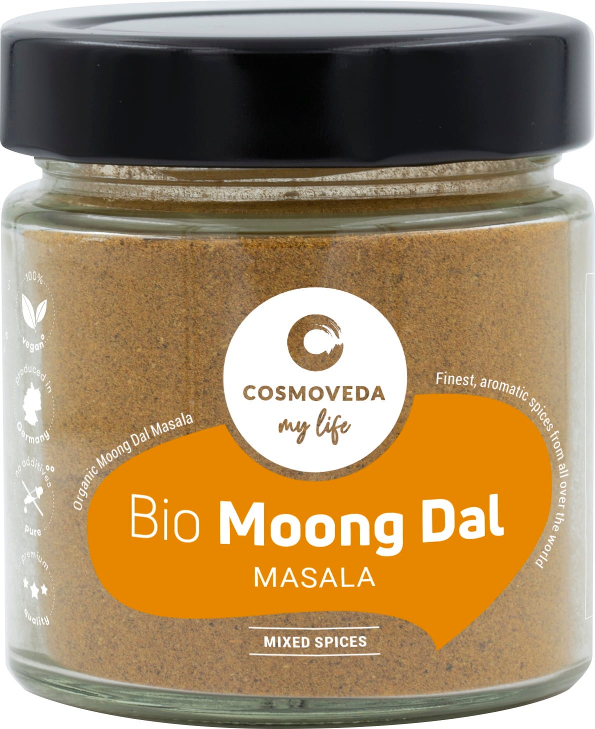 COSMOVEDA Organic Moong Dal Masala, a specially formulated Ayurvedic blend of fine spices for simple, delicious and easily digestible Moong Dal dishes. Fry the masala in ghee briefly or add to during the beginning or during cooking.