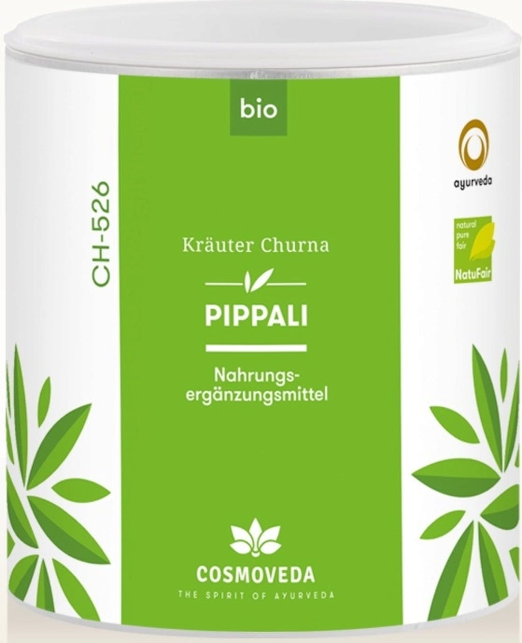 Pippali - Piper longum - is a long-peppered, slender, aromatic climber with perennial woody roots and 2.5-3.5 cm long, 5 mm thick fruit that have a blackish-green coluor. The ripe and unripe fruit as well as the roots are used in the Ayurvedic diet.