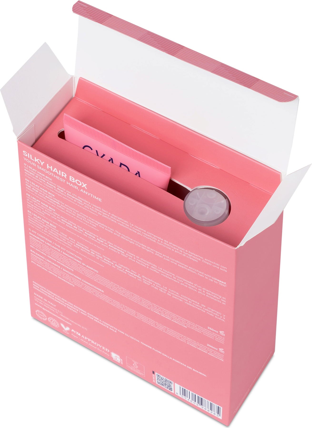 The Silky Hair Box contains 2 hair care products that have been specially formulated for straight hair. The shampoo and conditioner duo is enriched with extracts obtained from flax, oats, acai and amaranth, gently cleanses the scalp and detangles the hair. It ensures pleasant hair manageability and shine.