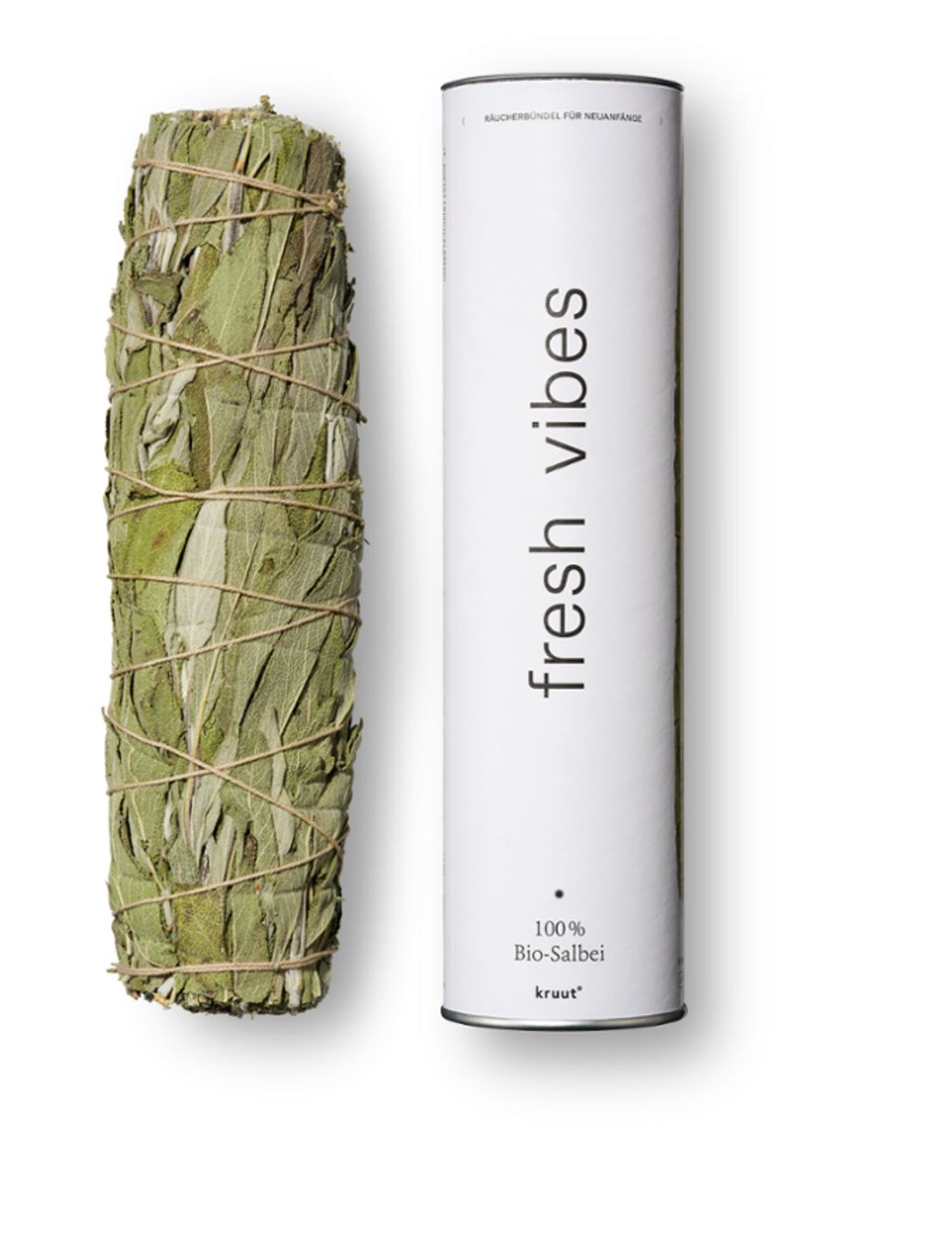 The Kruut Fresh Vibes Incense Bundle is made from high-quality, genuine sage from certified organic cultivation. When burned, the sage releases its characteristic spicy, resinous fragrance. Each bundle is hand-tied and gently dried to preserve the purity of the plant.