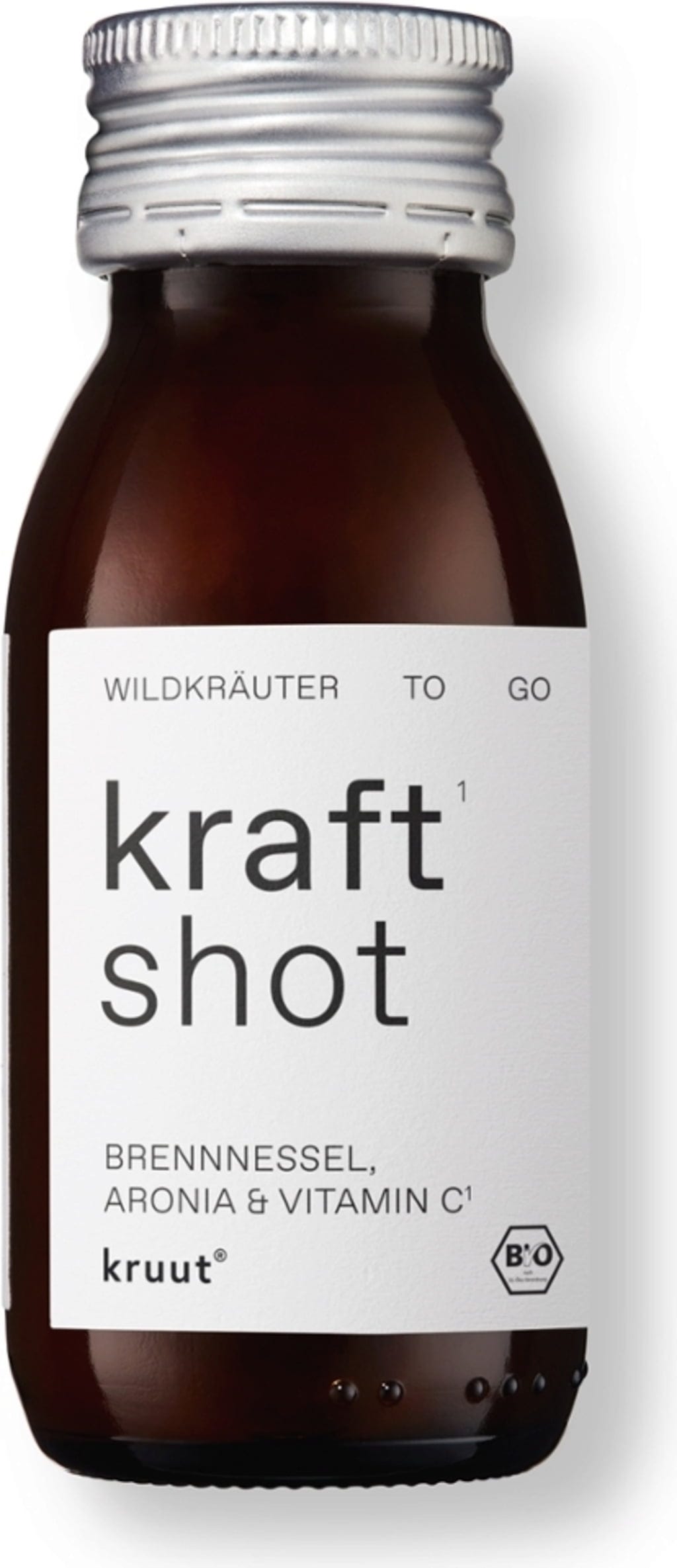 The Kruut Kraft Shot combines an age-old recipe of naturally cloudy Demeter apple cider vinegar and raw wildflower honey with native wild fruits and selected herbs. The formula features aronia berries as well as extracts of nettle, dandelion, red clover, and ground elder.