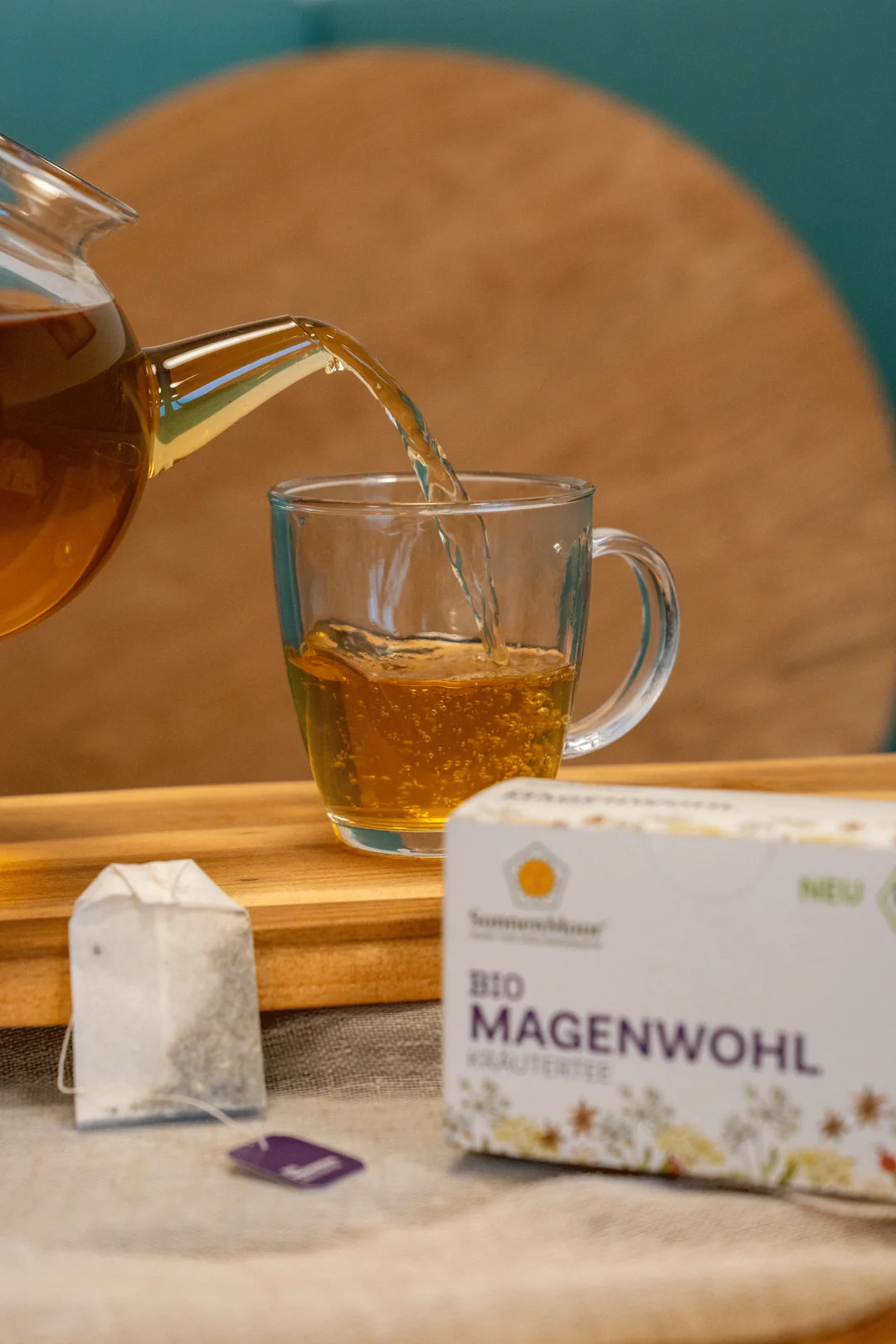 The Organic 'Magenwohl' Herbal Tea by SonnenMoor combines 14 carefully selected botanicals, including white dead-nettle, lemon balm, and chamomile. These high-quality raw materials are sourced from organic farmers in the Austrian Mühlviertel region and are processed without any artificial flavourings. Rounded off with aniseed and fennel, this blend offers an authentic taste experience for your daily routine. Thanks to its regional production and organic certification, this tea is a natural companion for your daily tea moments.