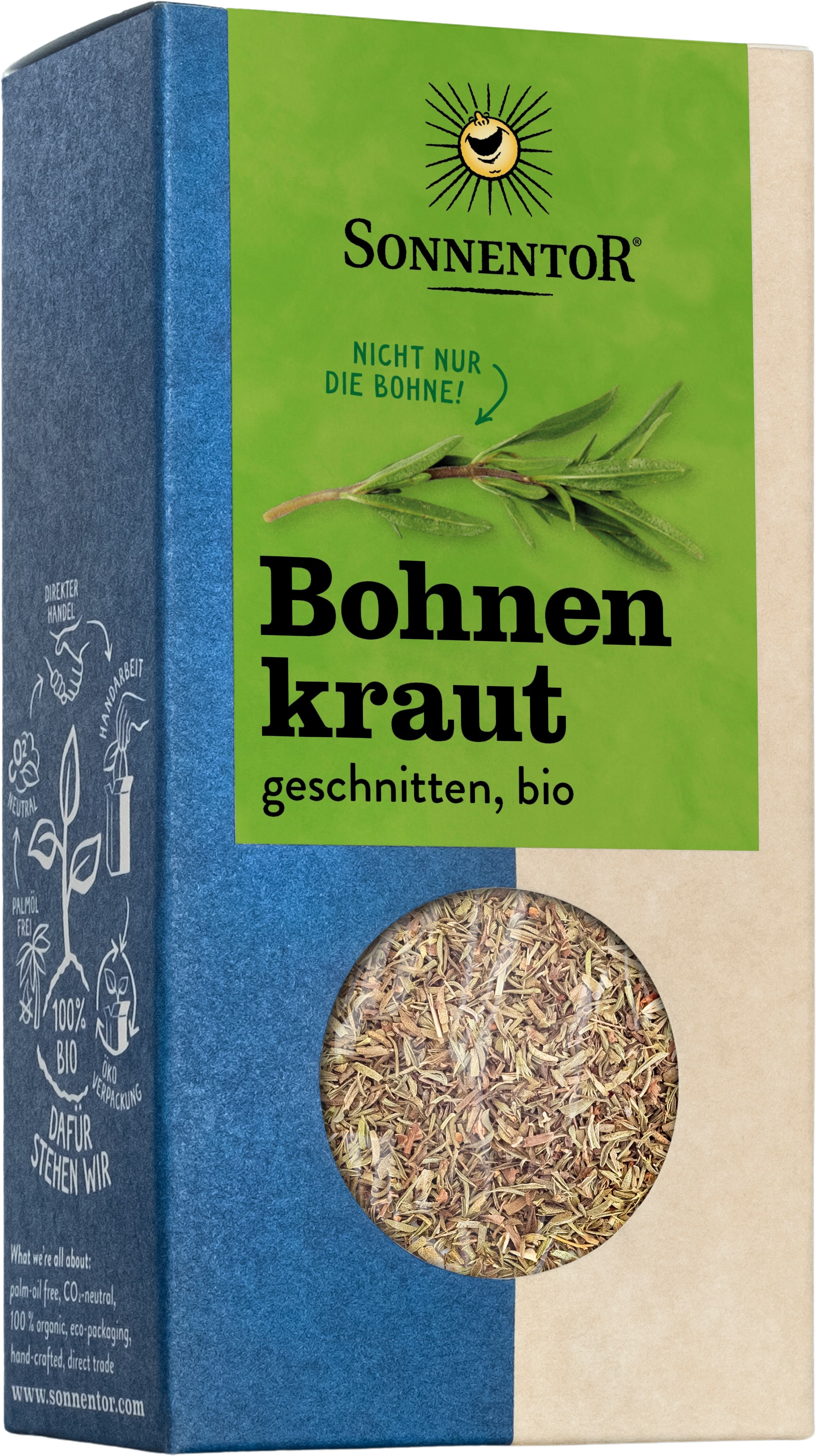 It is no big surprise that the herb suits beans so perfectly. Generally it harmonizes quite well with all types of legumes, which adds to the peppery and spicy flavor. The taste that is somewhat reminiscent of thyme, mint and marjoram also go well with potatoes, cabbage and root vegetables. The summer savory impresses with its intense, spicy fragrance. The peppery and spicy aroma reminiscent of marjoram and thyme, has a long-lasting, slightly refreshing taste on the palate.