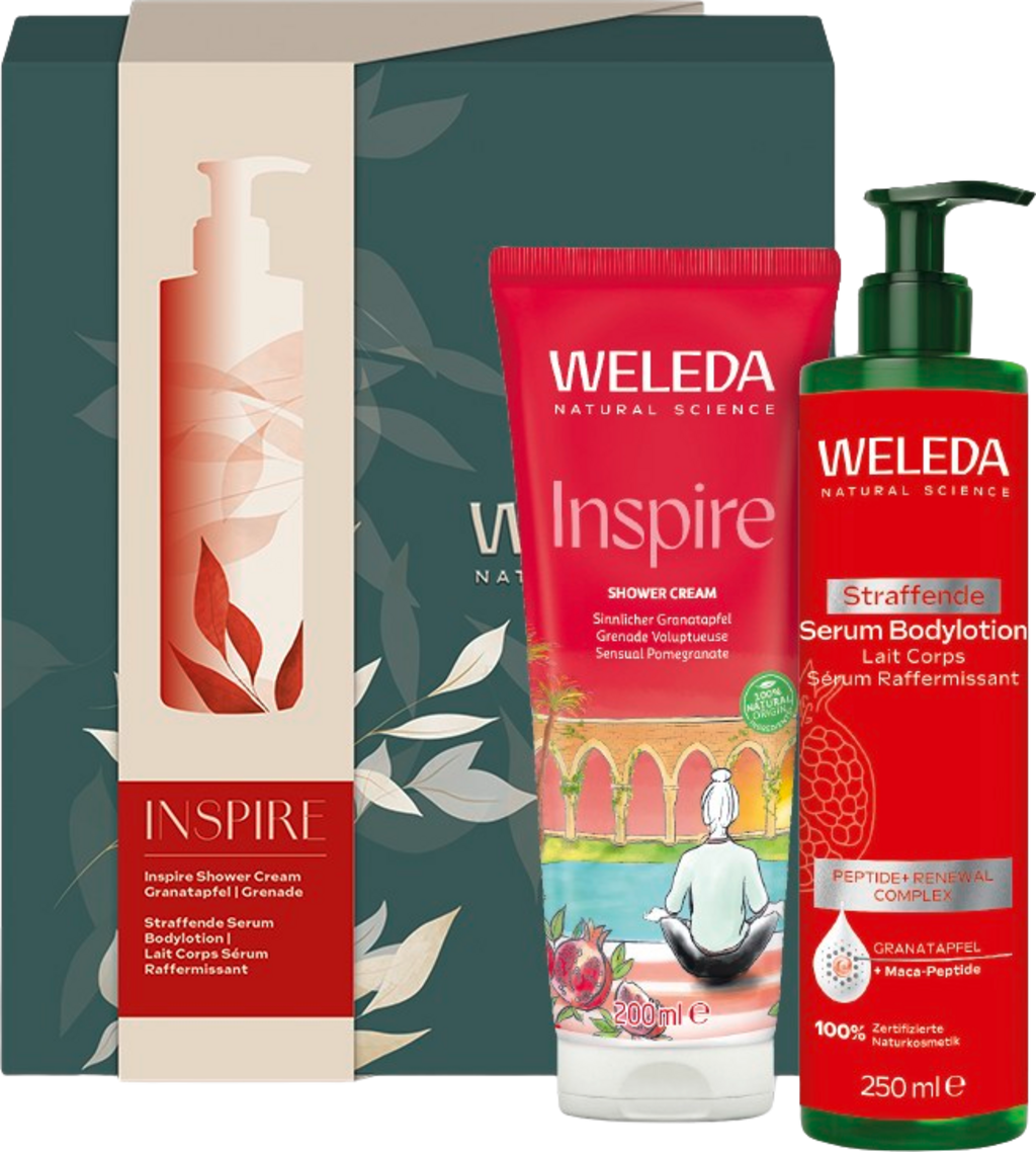 The Pomegranate gift set contains a nourishing duo of the Inspire Shower Cream Pomegranate and the Pomegranate & Maca Peptide Firming Serum Body Lotion. The two products offer a sensually indulgent fragrance and care experience and complement each other perfectly.